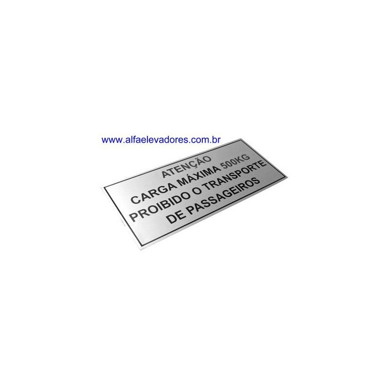 PLACA EM ALUMÍNIO 290 X 130 MM " ATENÇÃO CARGA MÁXIMA 600KG PROIBIDO TRANSPORTE DE PASSAGEIROS"